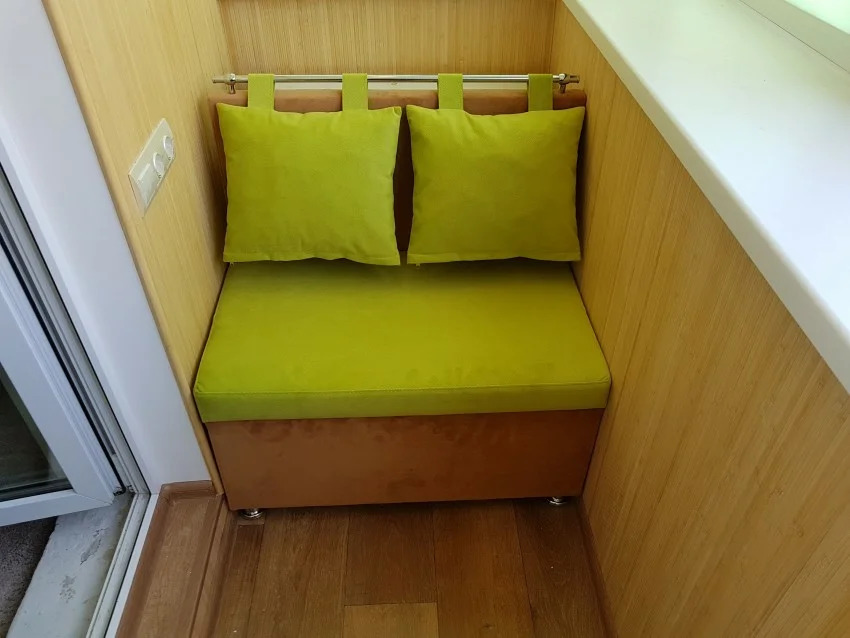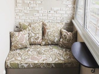 - Não faça o sofá muito volumoso ou superlotado com elementos estruturais. Um encosto volumoso e uma abundância de travesseiros ficam perfeitos em grandes peças macias de móveis. Para o sofá na loggia, as opções mais lacônicas são as ideais.