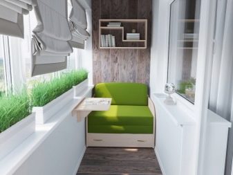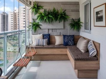 O layout do espaço da varanda dita suas próprias regras para mobília e seleção de itens de decoração. Devido ao pequeno tamanho da sala e à prolongada exposição aos raios solares, a estrutura do sofá deve atender aos requisitos básicos:
