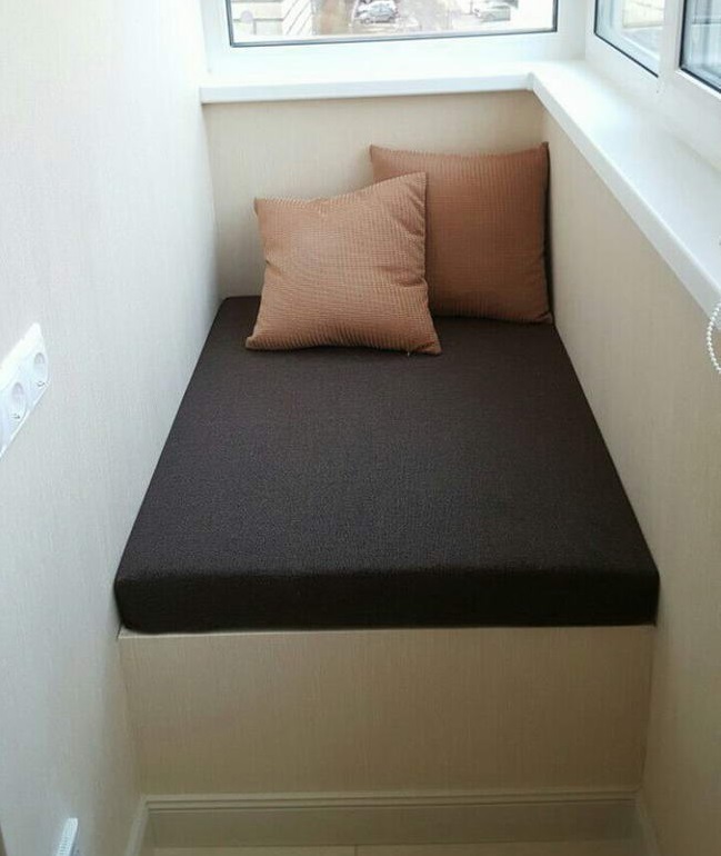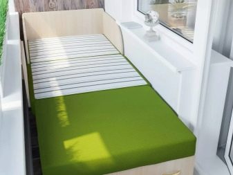 - Uma escolha prática para varandas é um sofá-cama. Trata-se de um móvel bastante confortável, além disso, se necessário, pode ser facilmente transformado em um aconchegante dormitório. O único requisito para tal estrutura é que, após o desdobramento, não bloqueie a passagem. Se a sala for aquecida, este sofá pode ser usado não só no verão, mas também nos meses de inverno.