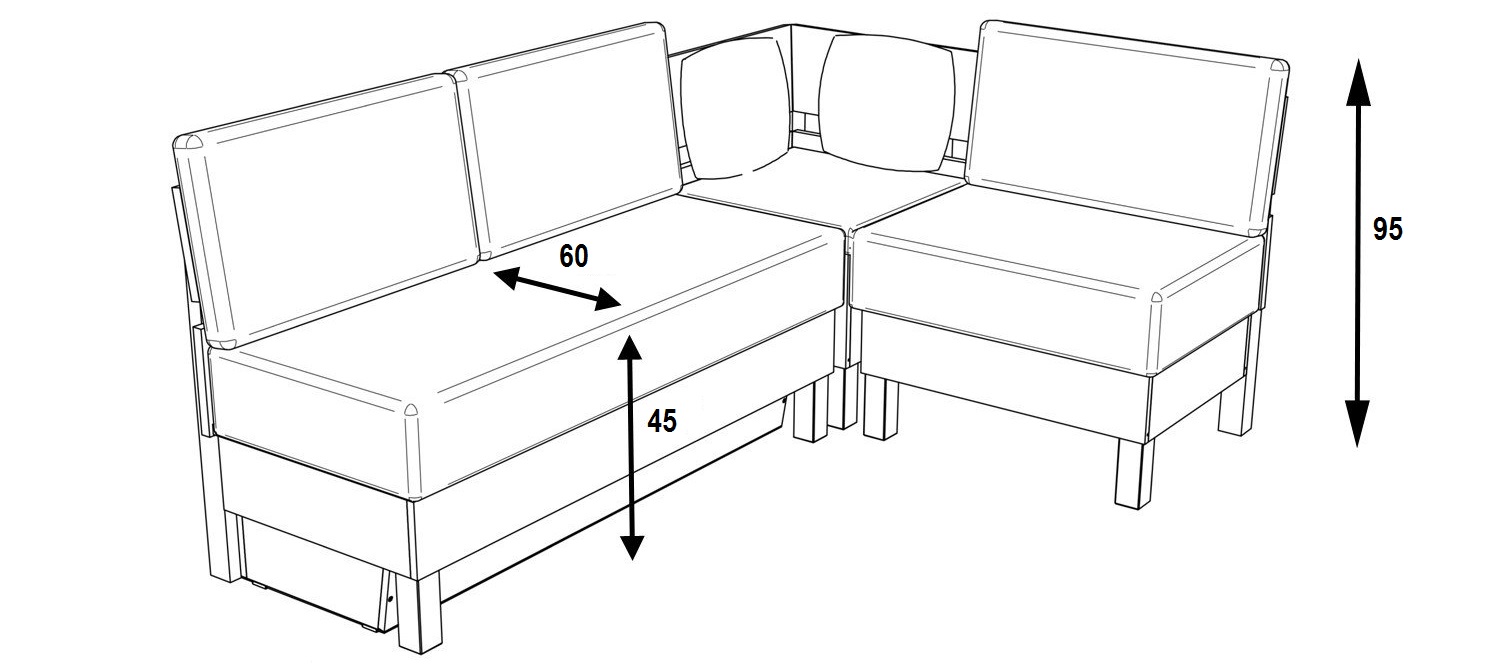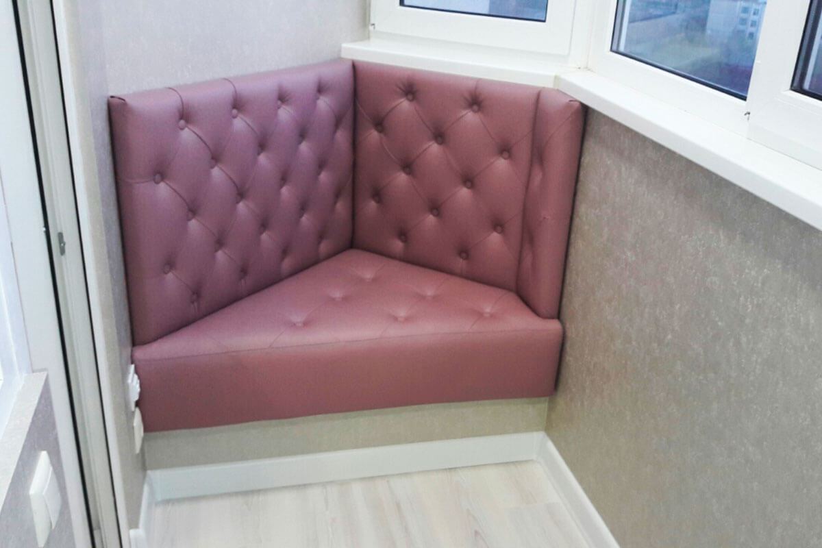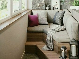 - Sofá de canto. Relevante se você precisar economizar espaço livre. Este é um modelo compacto, parece harmoniosamente em qualquer loggias e varandas. Porém, ao utilizá-lo, é importante escolher o local correto, a colocação das costas da janela é considerada ótima.