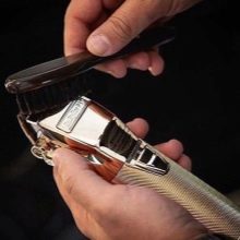 - em seguida, o aparador é desligado, o bico é retirado e limpo com um pano, e as próprias lâminas são limpas com uma escova especial;