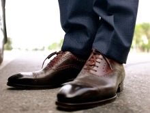 Também vale a pena considerar que o calçado deve estar em harmonia com os demais acessórios: gravata ou gravata borboleta, cinto. Mas as meias combinam com a cor das calças.