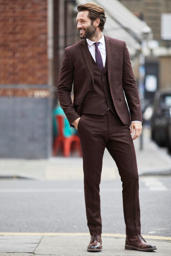 - terno marrom Vai bem com sapatos clássicos da mesma cor: tons claros e escuros servem.