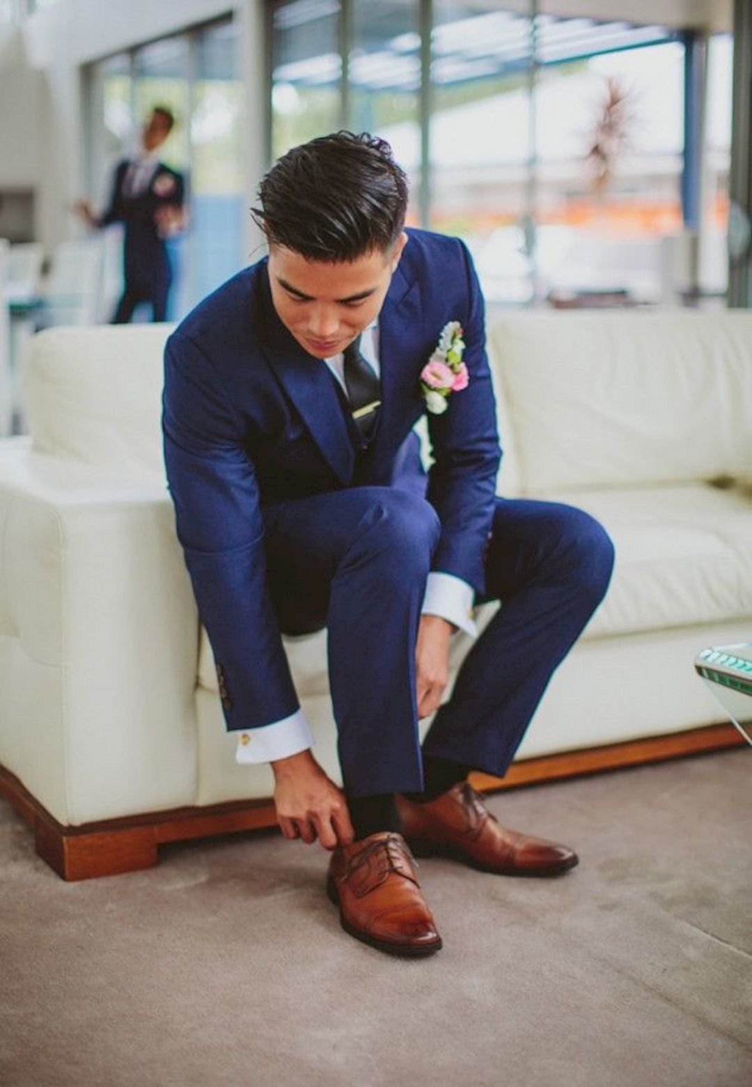 Precisa seguir para que a imagem também combine com o traje da noiva e com a cor do vestido, principalmente se for diferente do branco clássico. Os sapatos do noivo não devem se destacar do estilo geral dos recém-casados.