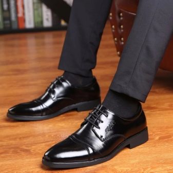 Sapato no guarda-roupa dos homens é sua parte integrante. As opções mais vencedoras são aquelas que são selecionadas levando em consideração a sazonalidade.... No inverno, os homens altos ficam melhor nos homens. botas ou sapatos baixos em pele com sola engrossada. Sapatos pretos clássicos - uma excelente solução para um fato clássico rigoroso.