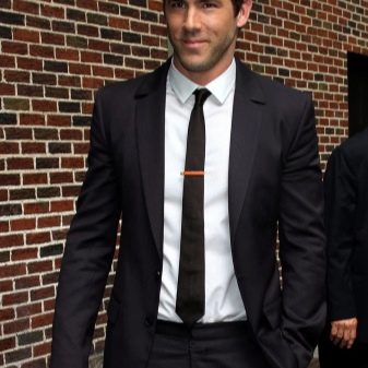 Debaixo terno clássico preto nem sempre use camisas brancas, alternativamente use azul e até escuro. Para trazer algo novo ao look preto total que é chato para todos, recomendamos que você preste atenção gravatas coloridas de cetim brilhante, eles ficam especialmente bem com ternos formais.