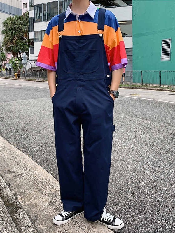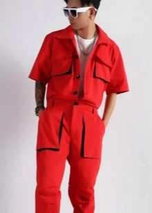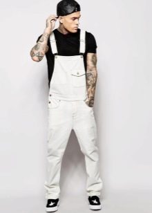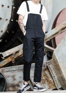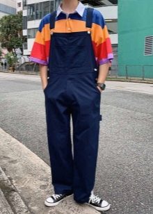 - Escolhendo macacão com suspensórios, os homens tentam manter a combinação de cores entre esses dois elementos. O estilo jovem permite e até acolhe o uso de contrastes.