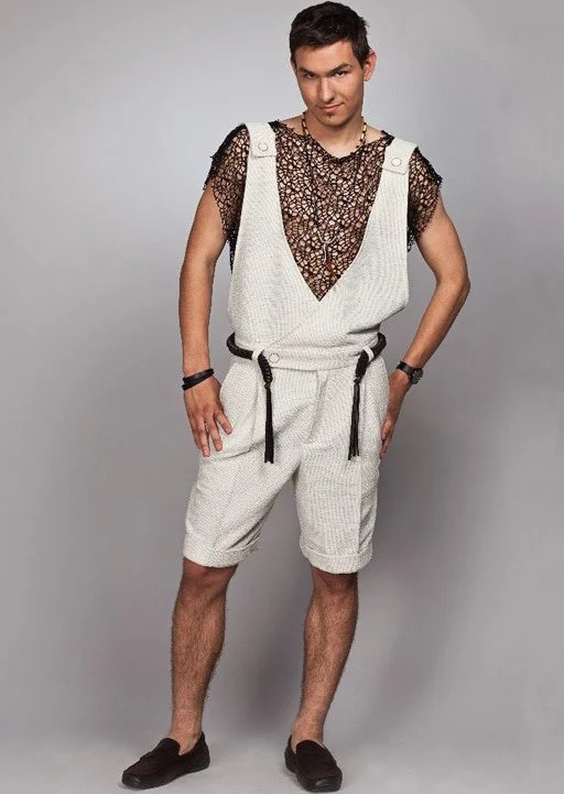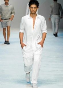 - Macacões magros enfatizar perfeitamente todas as vantagens de uma figura desportiva e em forma. Mas essas roupas devem ser escolhidas com cuidado, pois podem enfeitar a figura masculina ou, ao contrário, torná-la ridícula.