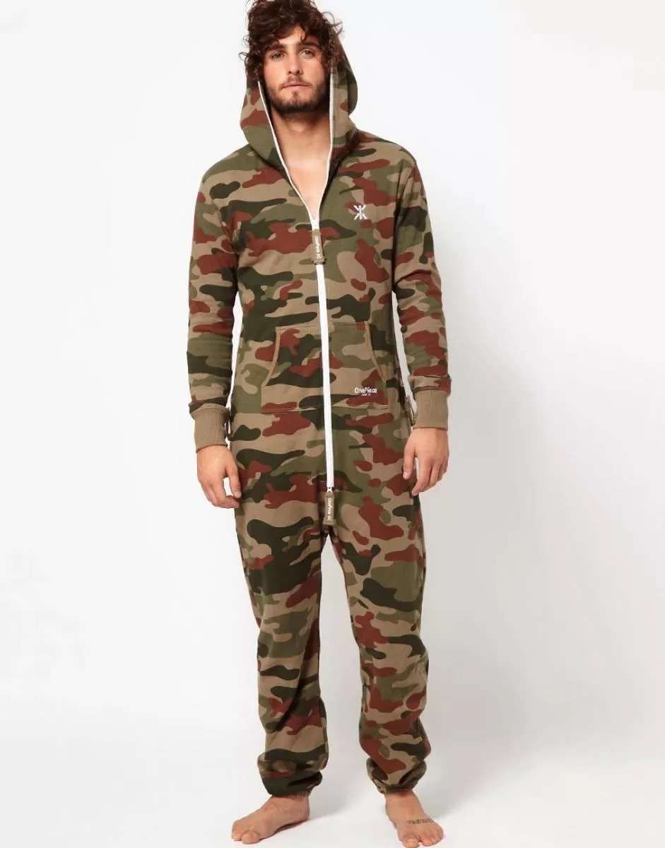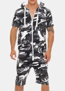 Tom de camuflagem feito apenas para macacões.Esses modelos estão entre os mais populares. Os homens são atraídos por eles pela praticidade e masculinidade. Essas roupas geralmente são usadas para trabalho, caça ou pesca.