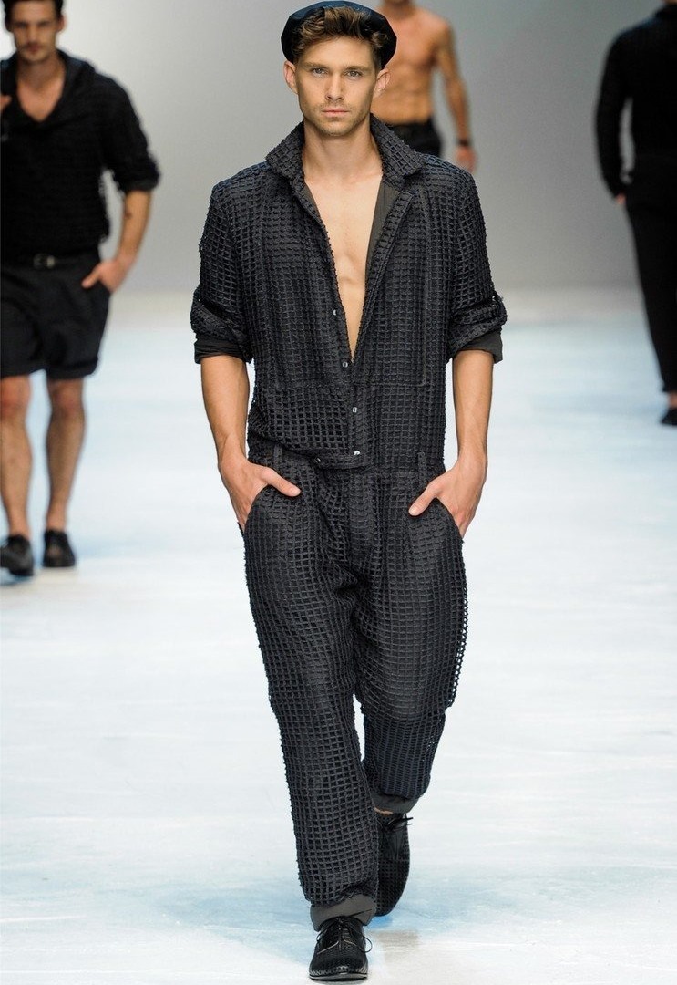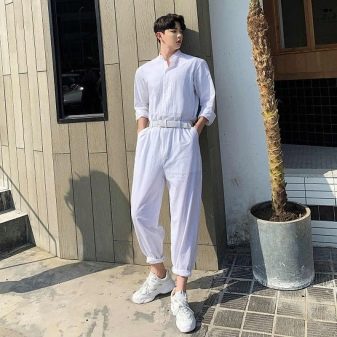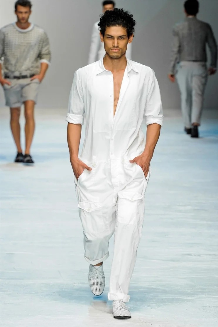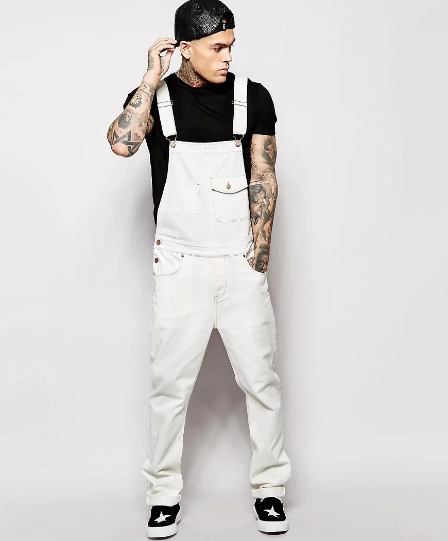 Por um lado, o macacão pode facilitar a vida dos homens e salvá-los do problema de combinar camisas com calças. Mas do outro lado uma camiseta branca sob o macacão ficará espetacular e lhe dará a oportunidade de desabotoá-la em dias de calor.