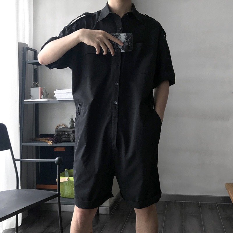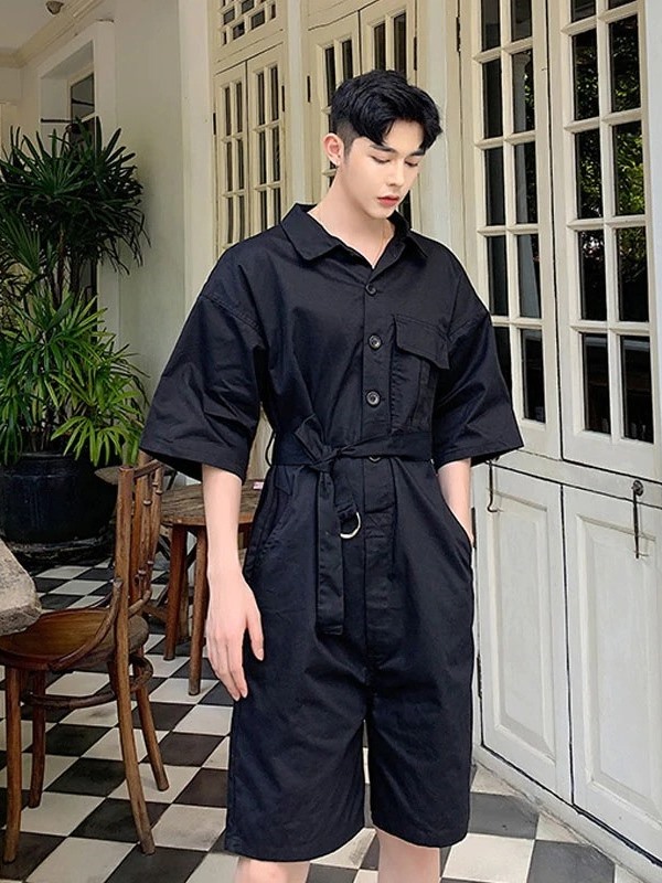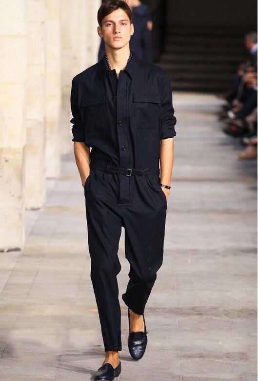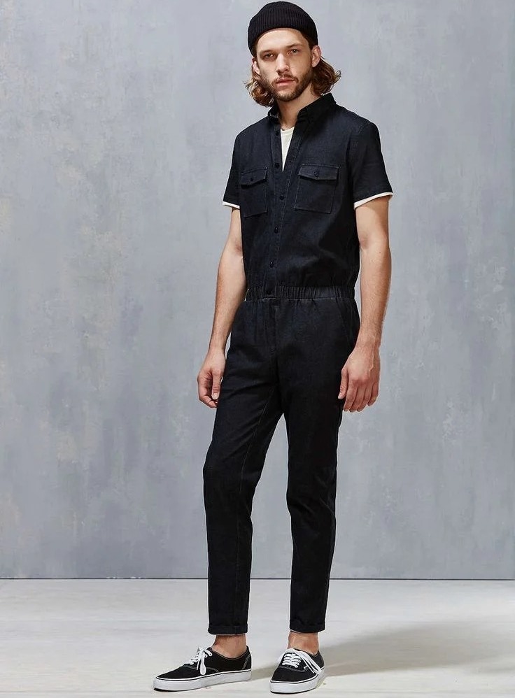 Macacões pretos universal e prático, portanto, há sempre um lugar para tal no guarda-roupa masculino.