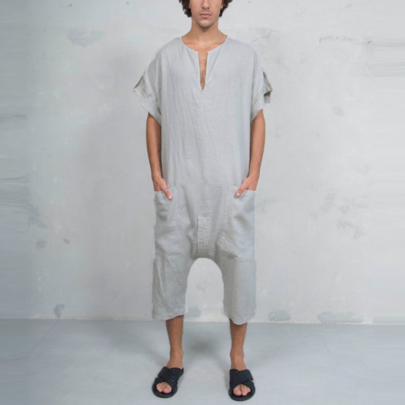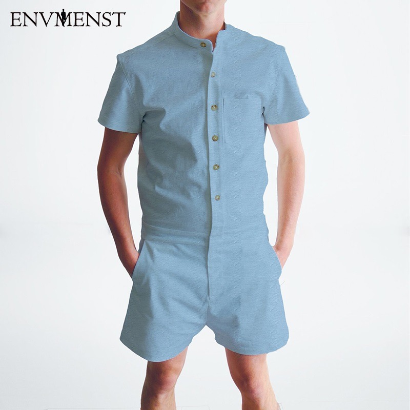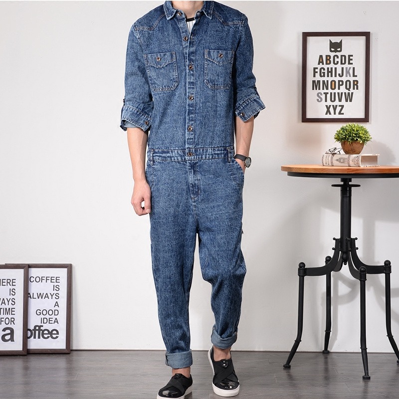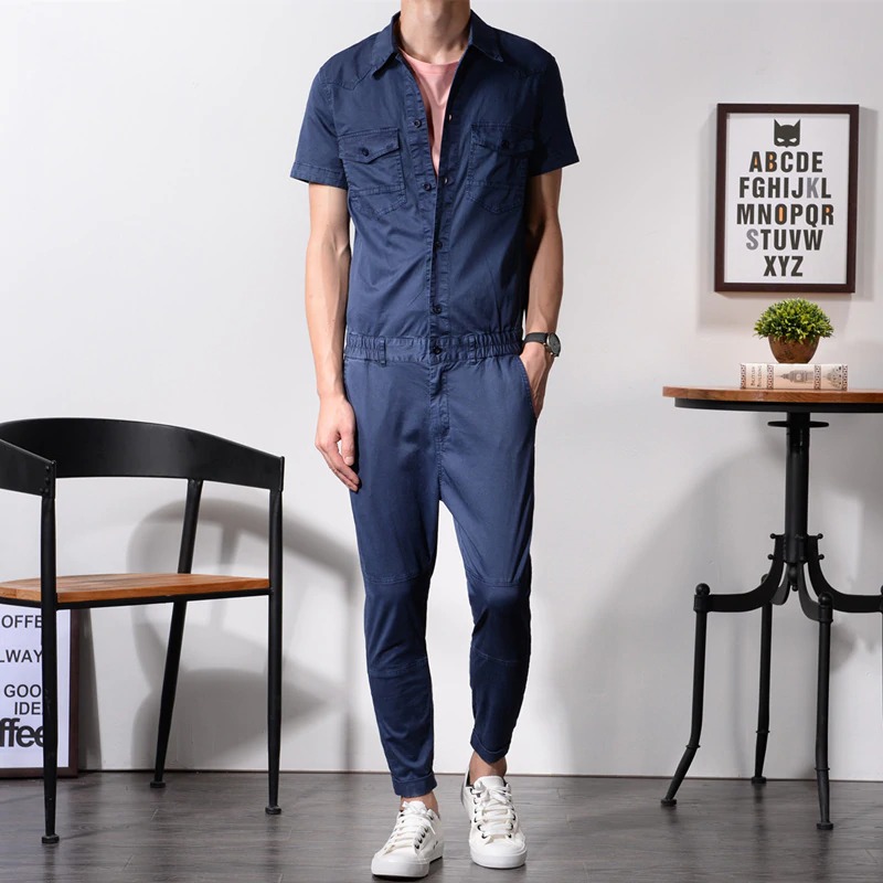 Uma variedade de materiais são usados para costurar macacões masculinos.