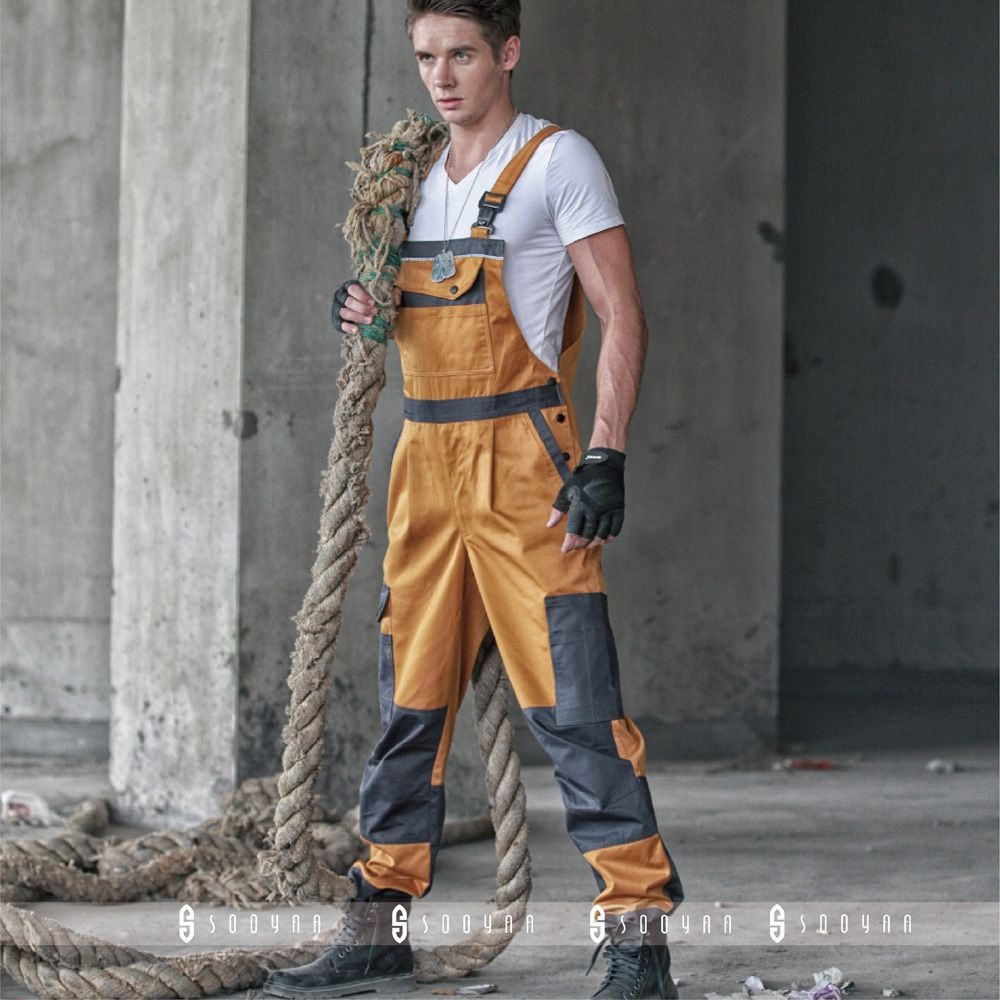 operários os macacões apresentam alto índice de praticidade e conveniência, esses modelos costumam ser complementados com um grande número de bolsos para guardar pequenas ferramentas, telefone e outros itens pessoais;