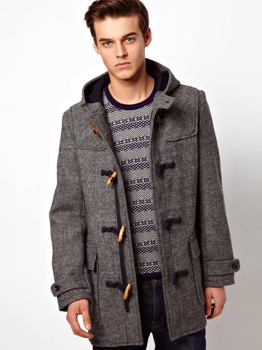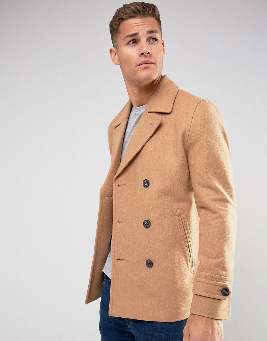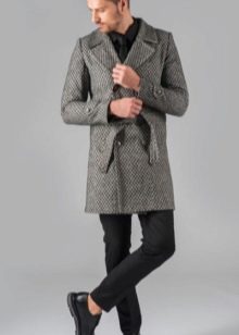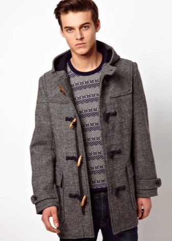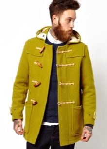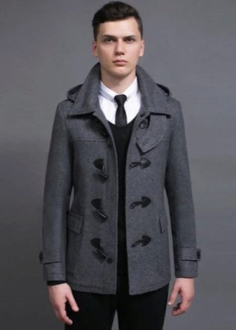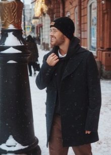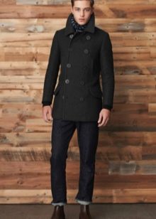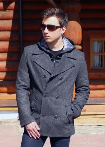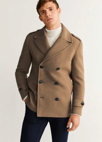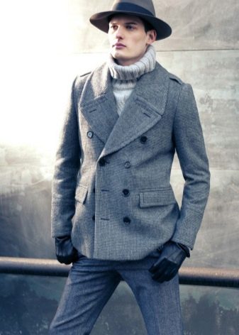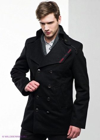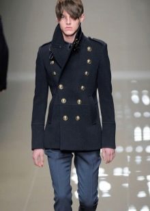 - Casacos e sobretudos de ervilha. Os casacos de estilo militar são populares entre os homens de todas as idades, apenas os adultos preferem modelos alongados e os jovens escolhem opções cortadas até o meio da coxa.