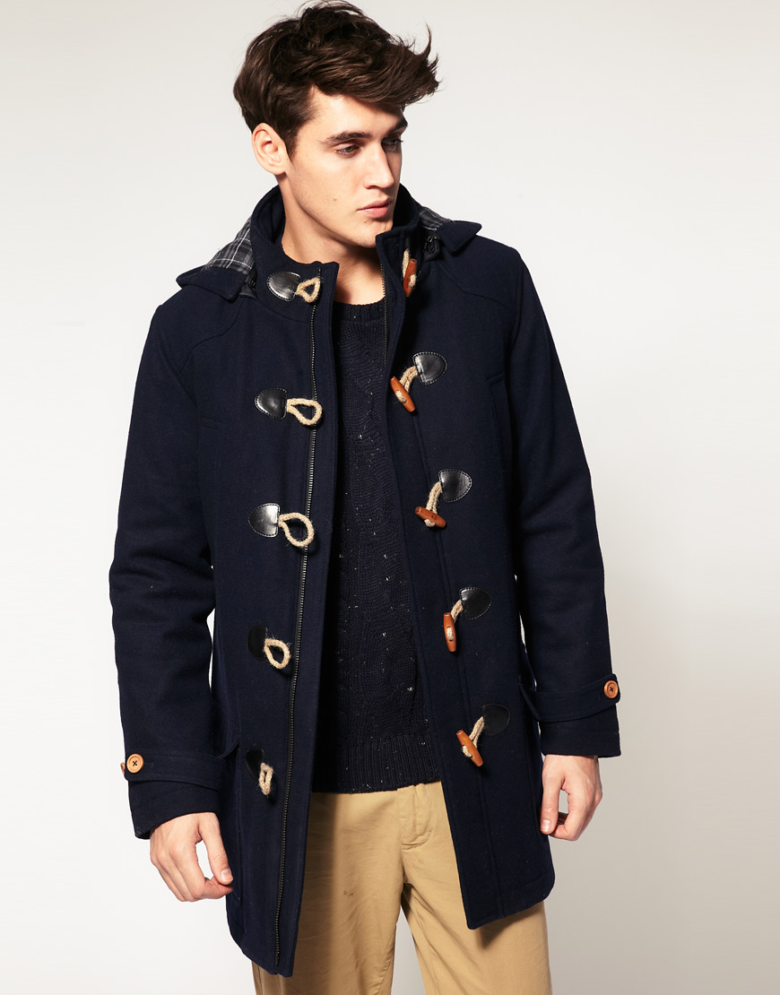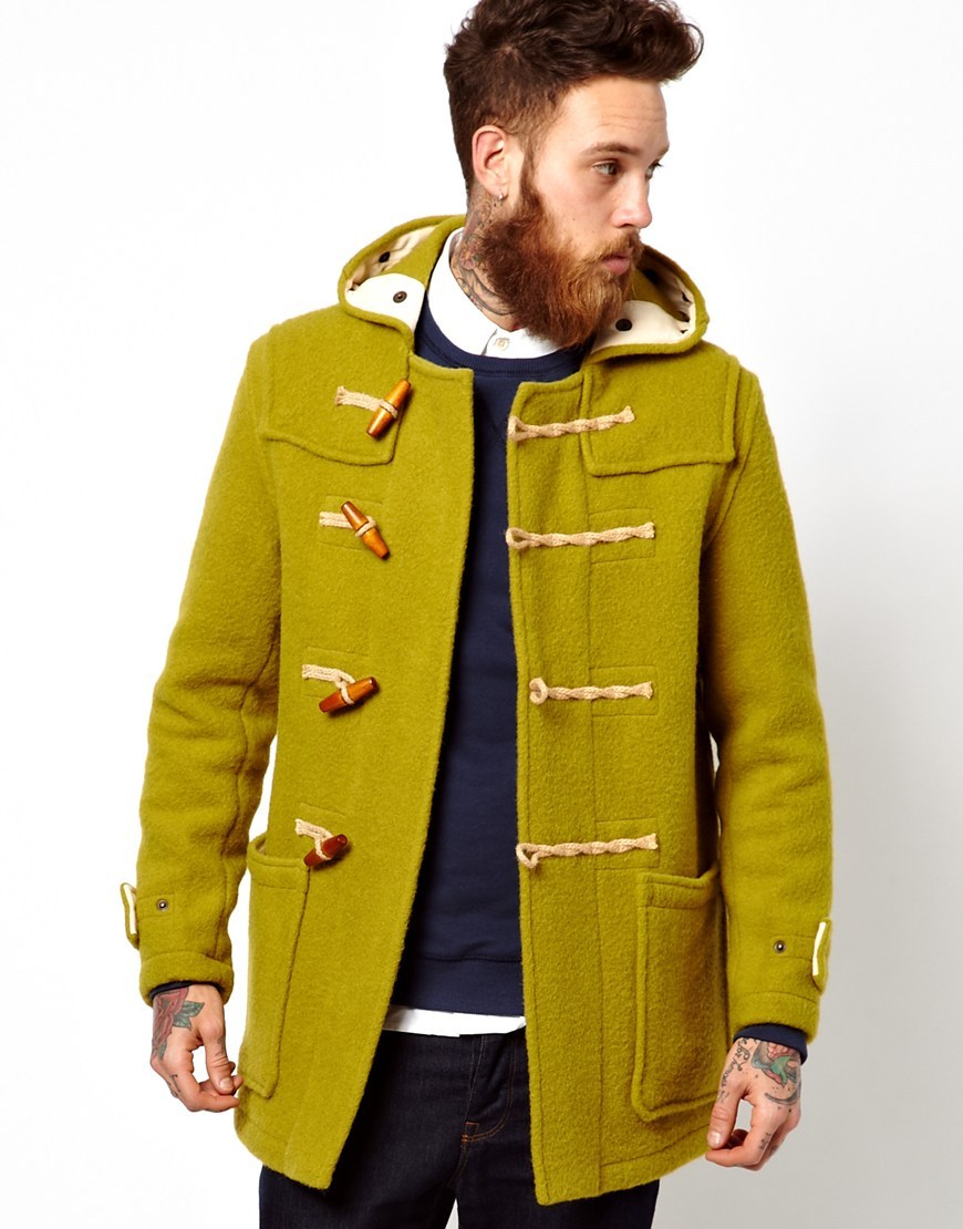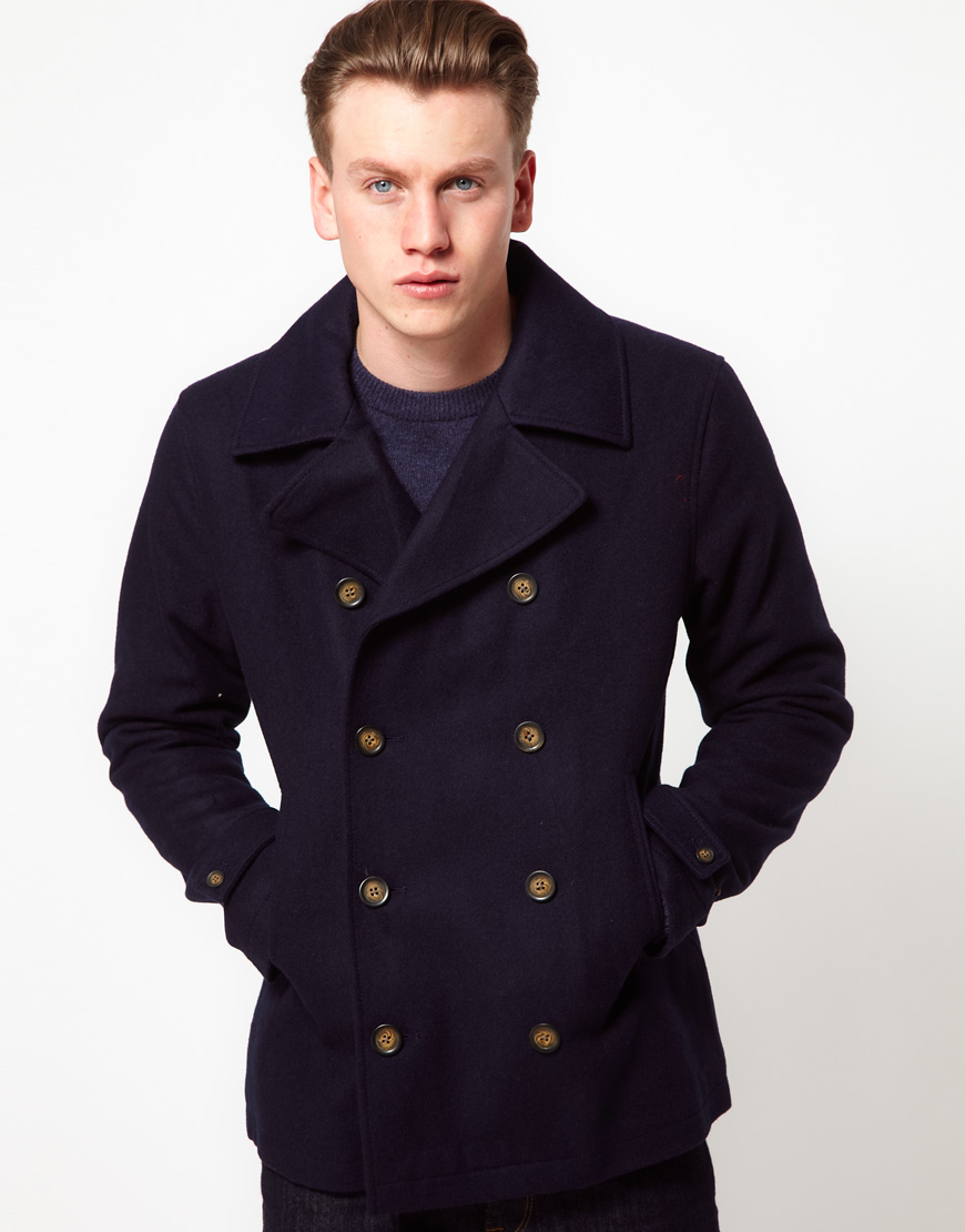 - Casacos e sobretudos de ervilha. Os casacos de estilo militar são populares entre os homens de todas as idades, apenas os adultos preferem modelos alongados e os jovens escolhem opções cortadas até o meio da coxa.