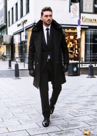 Um casaco preto pode ser combinado com calças clássicas e um casaco. Porém, também pode ficar harmonioso com um conjunto de jeans e um sweater - a escolha do conjunto depende do look desejado.