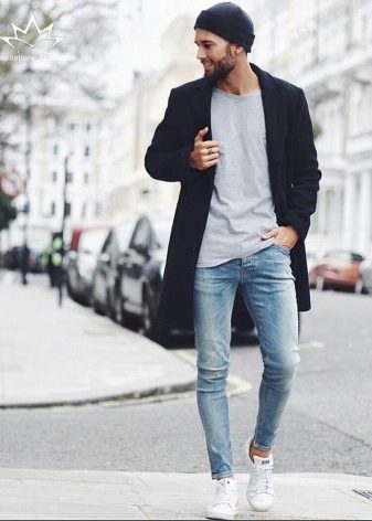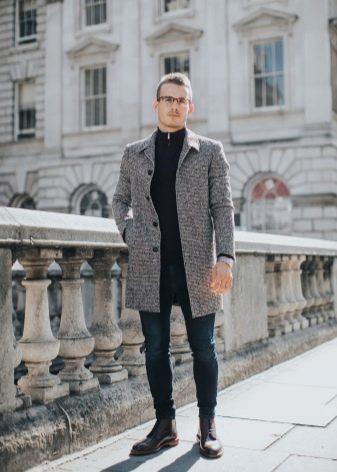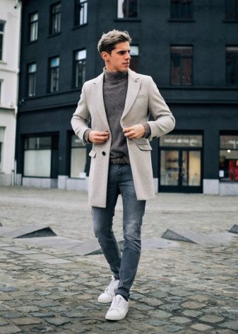 Em comparação com um casaco cinza preto, parece menos formal, portanto, esses modelos podem ser combinados com jeans, cargo, bem como botas baixas, botins e tênis.