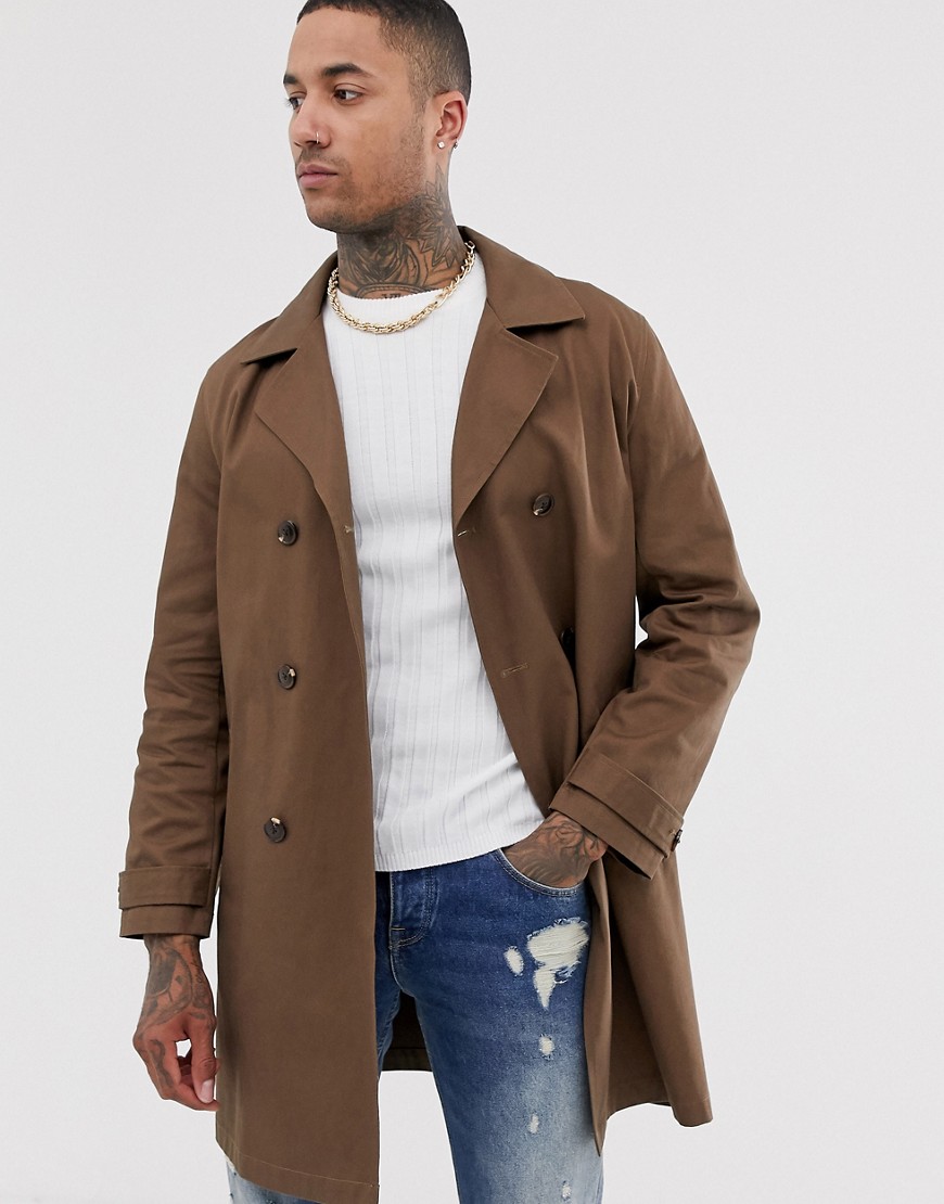 - Casaco impermeável. Para muitos jovens, esse estilo está associado a uma capa de chuva, mas o modelo se tornou tão popular que muitos designers eminentes o aqueceram e começaram a costurá-lo com tecidos mais densos - lã ou couro. O sobretudo será a melhor escolha para homens autoconfiantes, carismáticos e ao mesmo tempo um pouco chocantes.