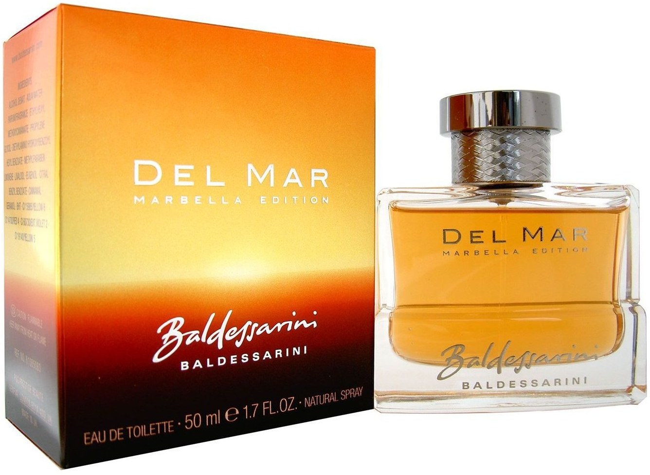 - Baldessarini Del Mar Marbella. Uma das fragrâncias masculinas mais populares, que faz parte da coleção Del Mar. Em produção desde 2008. Atrai muitos cavalheiros com uma incrível pirâmide de composição perfumada composta de suculenta toranja, cardamomo, cedro, âmbar e vetiver. Baldessarini Del Mar Marbella pertence à família dos aromas amadeirados e picantes.