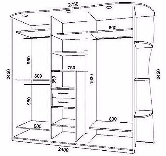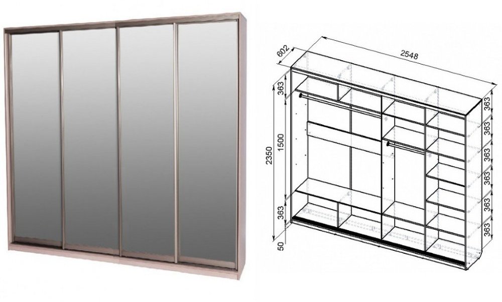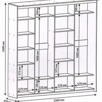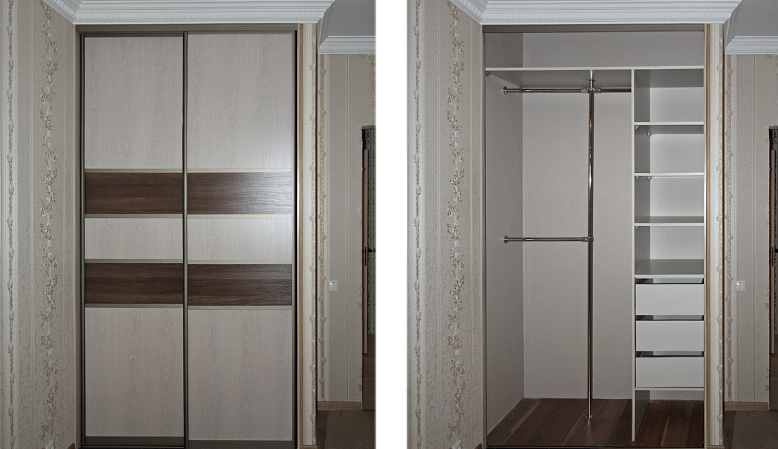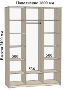 A peculiaridade da estrutura desses armários é que suas portas se afastam, como as portas dos compartimentos de um trem, e não se abrem da maneira usual. Devido a isso, tal estrutura pode ser convenientemente localizada em um corredor apertado ou em um corredor estreito. As dimensões típicas oferecidas em showrooms de móveis podem nem em todos os casos caber no espaço da sala.