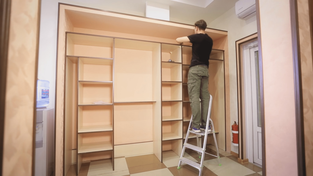 O princípio básico da montagem é que primeiro se monta a base da estrutura e depois se procede à fixação das prateleiras e dos elementos do enchimento interno. As prateleiras são fixadas aos painéis por meio de cantos de móveis. Primeiro, você precisa verificar a uniformidade da posição das peças conectadas, aplicando um nível.