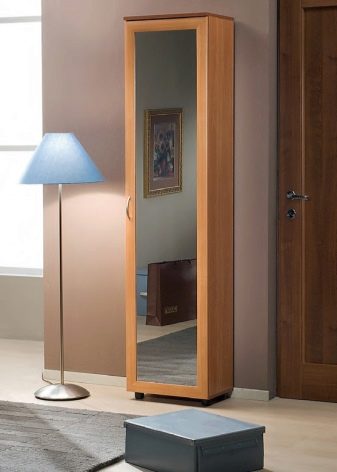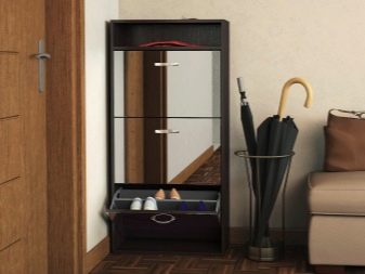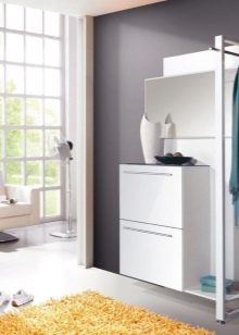 - Com espelho na fachada. Caixas de sapato estreitas e altas se encaixam perfeitamente em corredores de qualquer tamanho. Eles complementam com sucesso o interior e permitem que você avalie imediatamente sua imagem antes de sair, graças ao espelho na parte frontal.