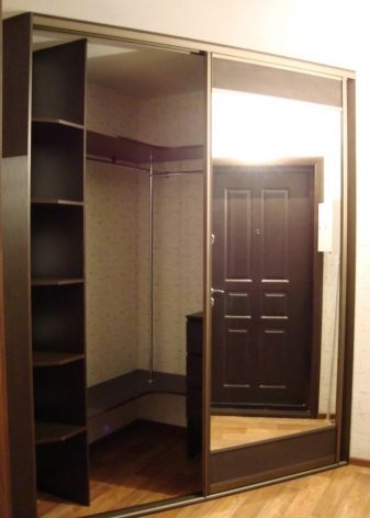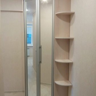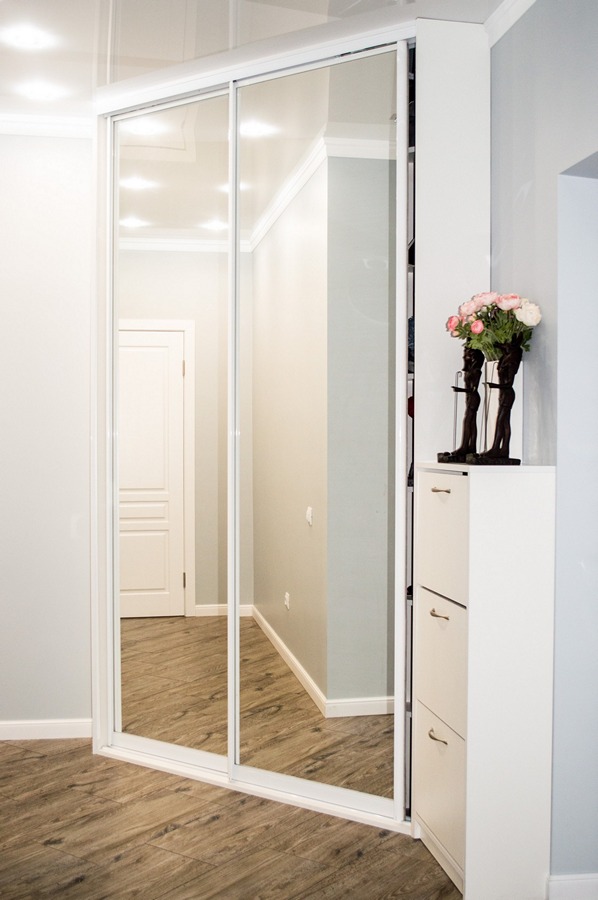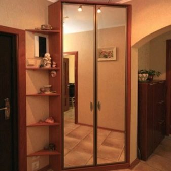 Além disso, esses gabinetes podem ser estreitos ou largos. Para corredores pequenos e estreitos, a primeira opção com fachadas espelhadas é adequada. Eles não ocuparão muito espaço, mas ao mesmo tempo expandirão visualmente a sala.