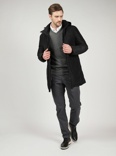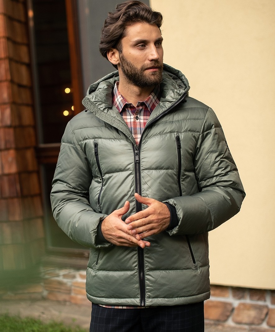 Ao escolher um casaco desportivo para homem, deve prestar atenção às características dos materiais com que é feito. As melhores propriedades de isolamento térmico são possuídas por produtos recheados com penas naturais de pato ou ganso. Menos quentes são os produtos em que uma mistura de penugem e penas serve de enchimento. Jaquetas com tipos desatualizados de enchimentos artificiais mantêm-se aquecidos o pior de tudo.