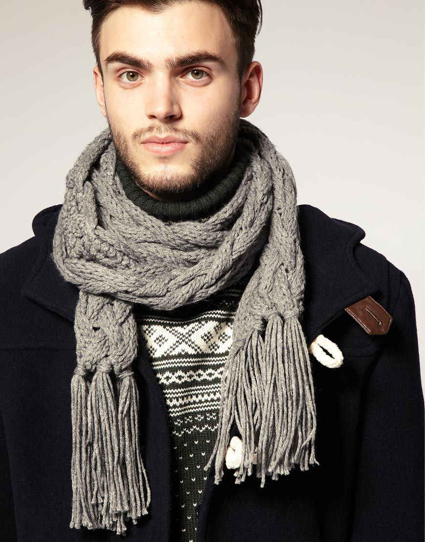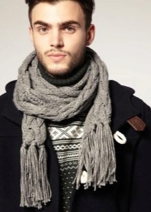 Todos os nós volumosos serão um bom complemento para jaquetas de inverno e jaquetas de penas. Esta combinação ajudará não só a criar a imagem necessária, mas também a proteger tanto quanto possível do gelo e do vento. Para jaquetas de molas leves e blusões, o envoltório duplo regular é mais adequado.