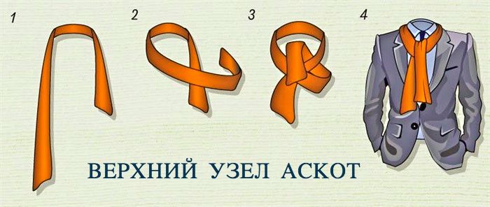 Um lenço leve amarrado com o método ascot é parte integrante de um look clássico e empresarial. As bordas do acessório podem ser uma parte completa da imagem ou apenas lembrar um pouco de si mesmas.