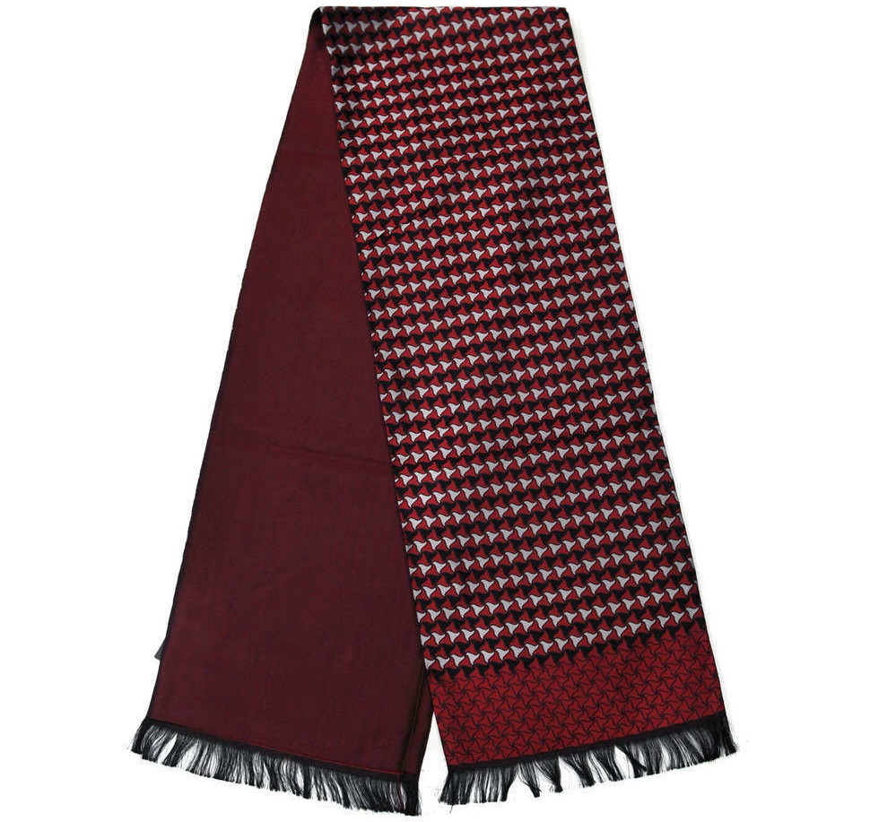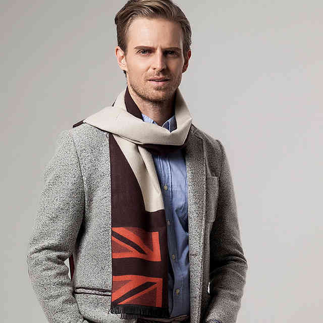 - Um cachecol de dupla face só pode ser combinado com um guarda-roupa clássico, portanto, não deve haver liberdade no estilo de amarração. A imagem deve ser estrita, concisa e sem negligências externas.