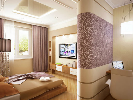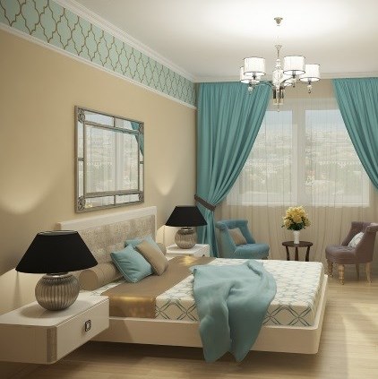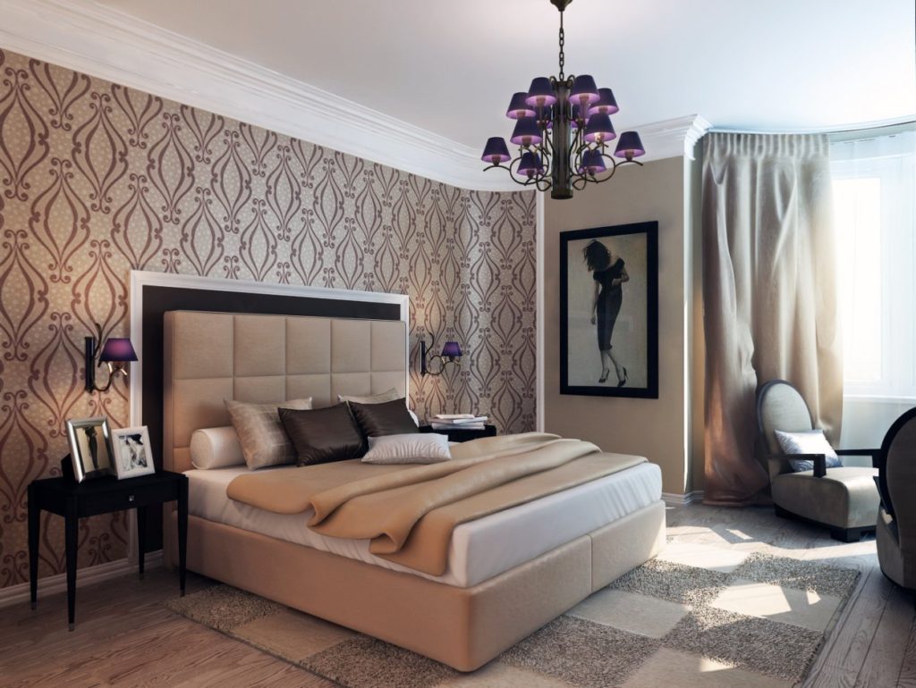 Quando essas questões forem resolvidas, será mais fácil ter uma visão geral, levando em consideração que no quarto, junto com o papel de parede bege, é melhor não usar mais de três tons. Se você precisa de um sotaque brilhante em uma sala, pode haver apenas um.
