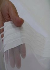 A tela é de origem artificial, distingue-se pela leveza e transparência. Nas lojas, o tule é apresentado nos mais variados tons, texturas e opções de design. Claro, esse tecido tem vida extremamente curta. Mas essa desvantagem é mais do que compensada pelo preço democrático da tela.