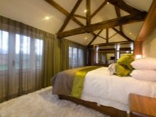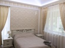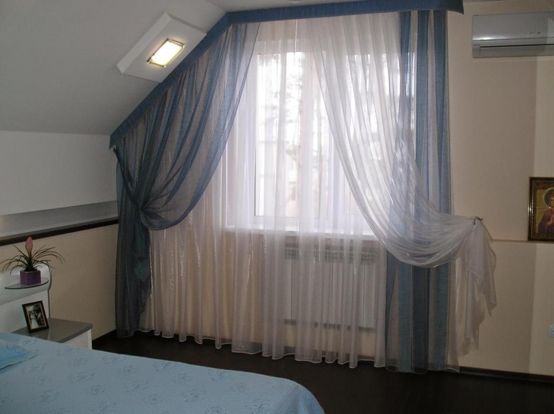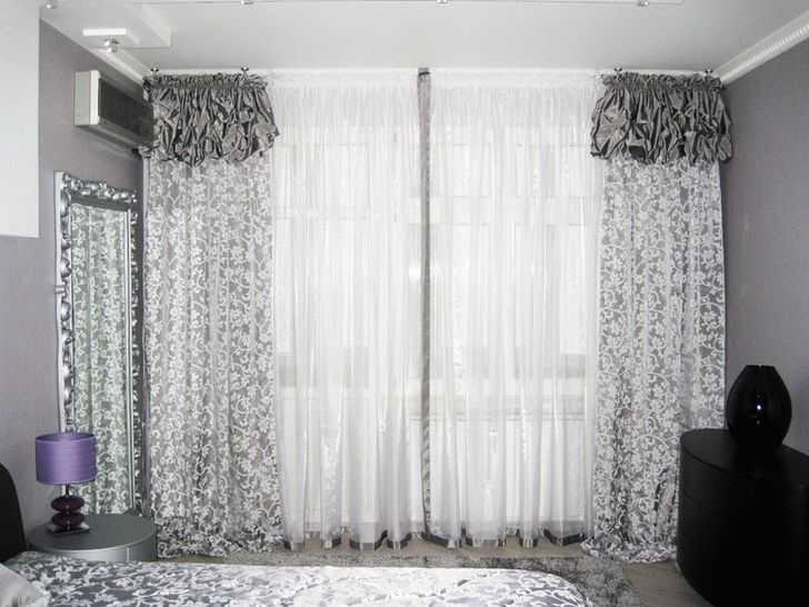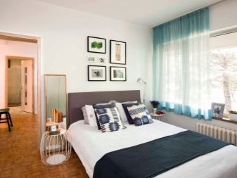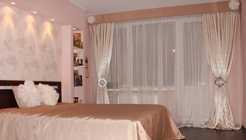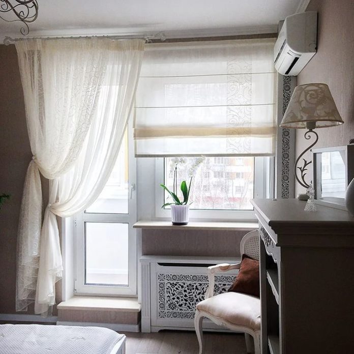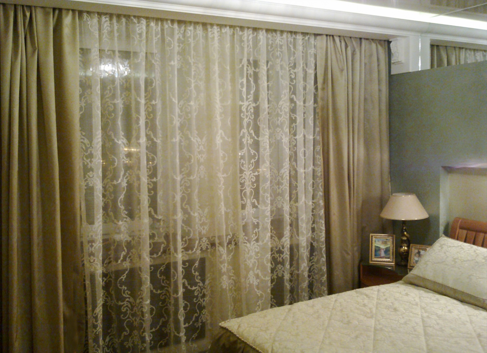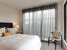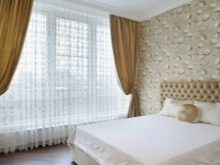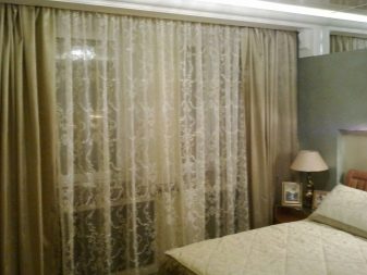 Ao decorar janelas, você precisa se lembrar da funcionalidade da sala e, com isso em mente, selecione os parâmetros da tela e o esquema de cores. Nas áreas de dormir, é muito importante criar o ambiente mais relaxante e calmo, mantendo a privacidade absoluta. À noite, cortinas serão as responsáveis por isso, de dia - tule claro.