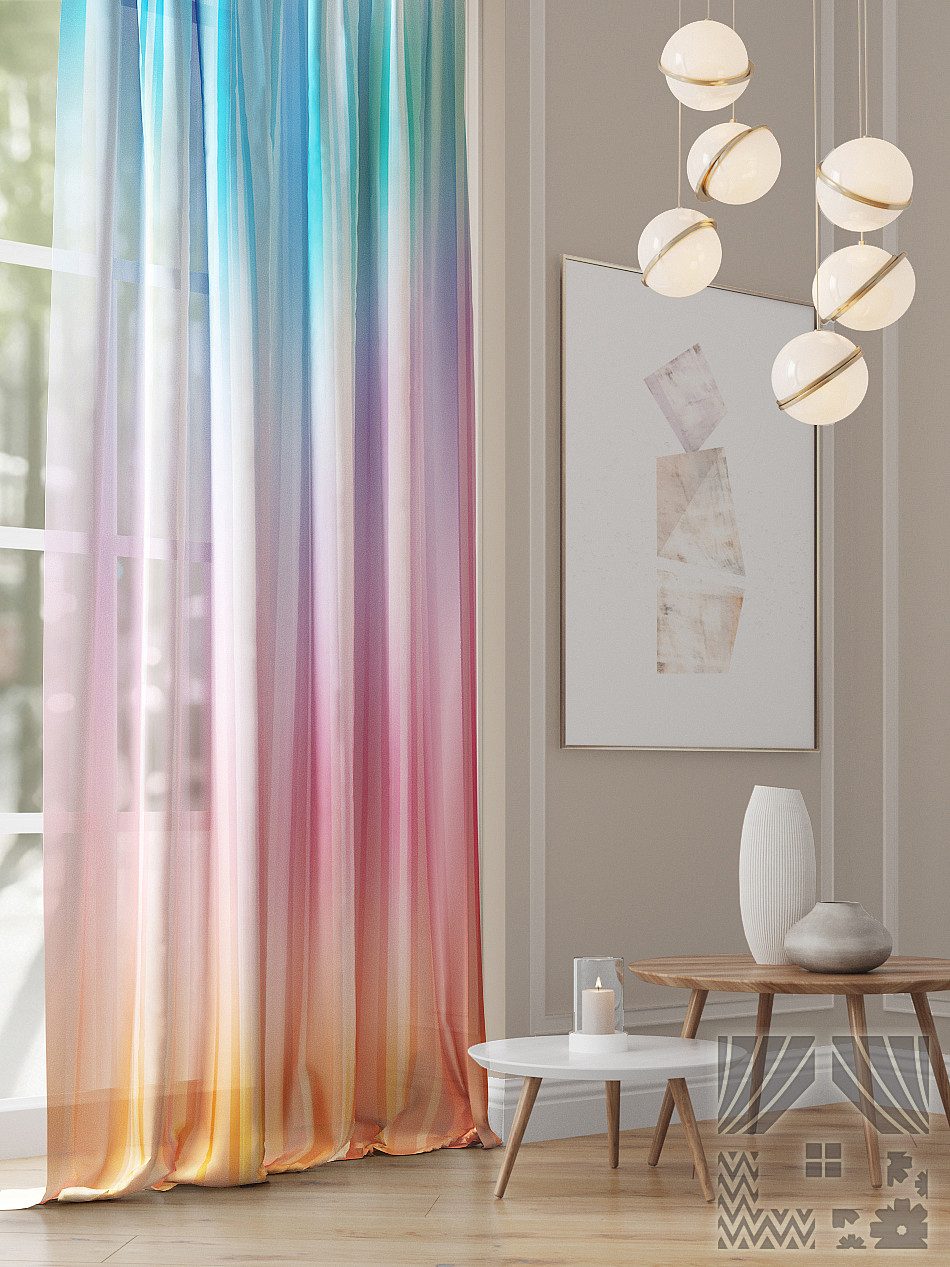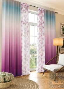 Na forma, essas cortinas são retangulares ou quadradas, menos frequentemente são feitas em uma forma triangular ou semicircular. Combinações de duas ou três variedades parecem muito elegantes. Hoje em dia, o design assimétrico é muito popular, sendo relevante na decoração de quartos com varanda.