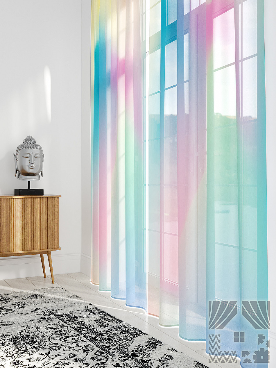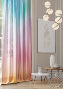 A tendência dos últimos anos é a ideia de ombre da moda. Este tule é composto por faixas duplas-triplas coloridas de diferentes tons, que se fundem suavemente. Por exemplo, a parte superior branca se mistura com o azul do meio, que gradualmente se transforma em roxo.