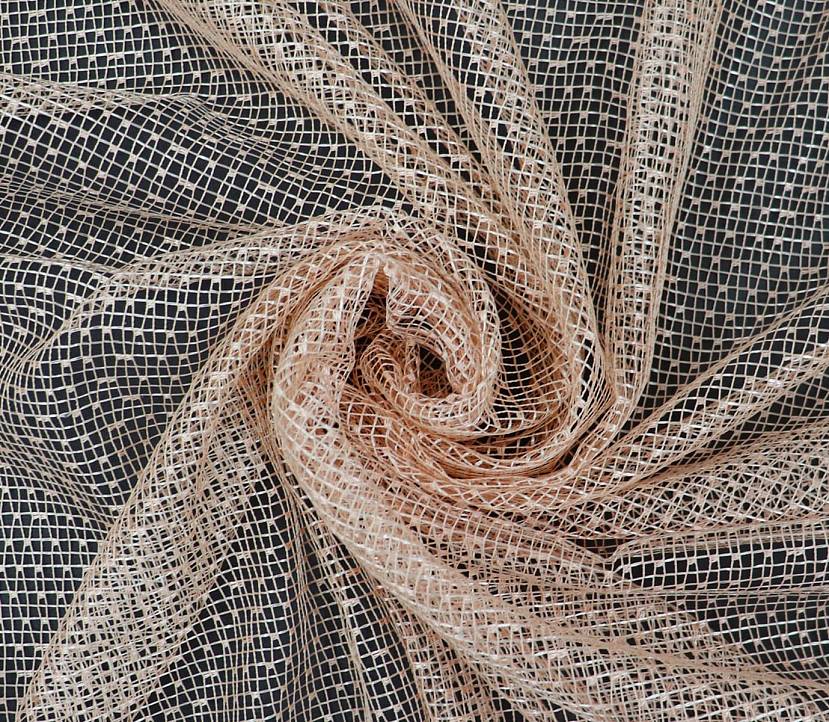 Material translúcido, leve, quase sem peso, mas ao mesmo tempo bastante resistente. É mais frequentemente usado como uma camada adicional para tules feitos de tecidos mais macios e mais macios.