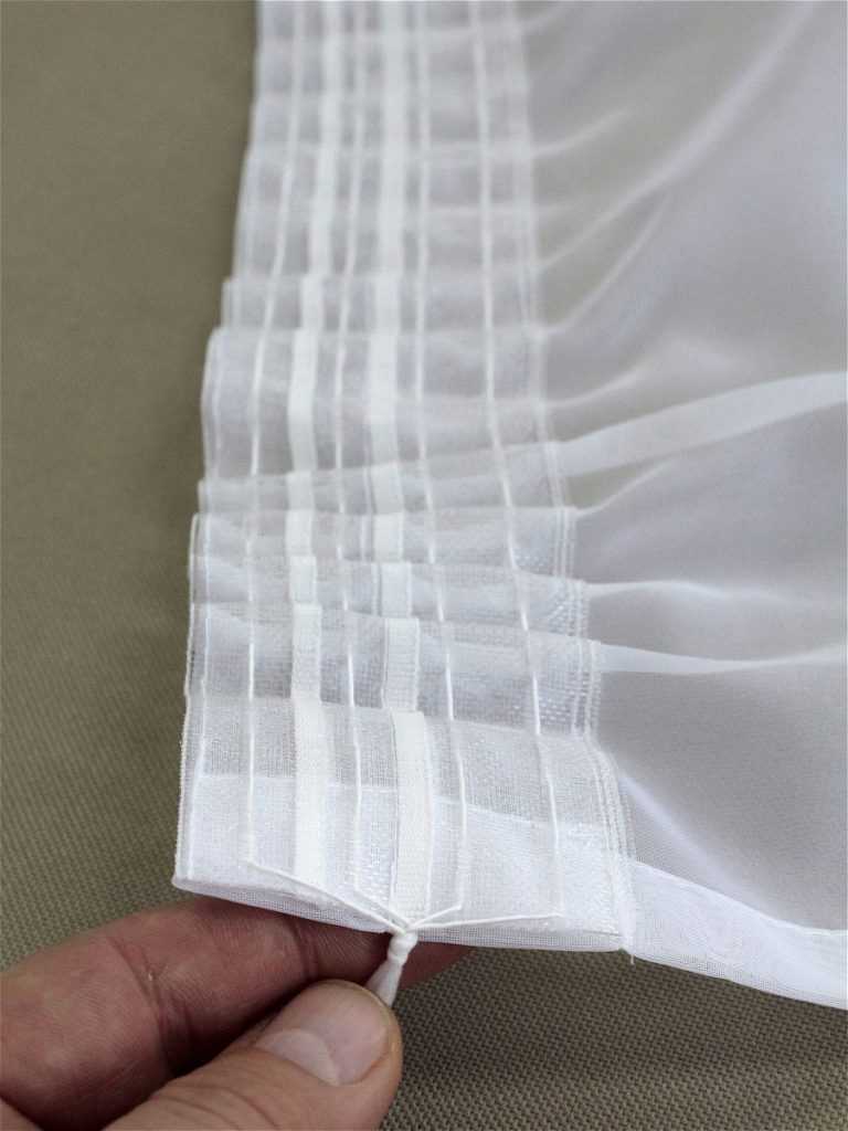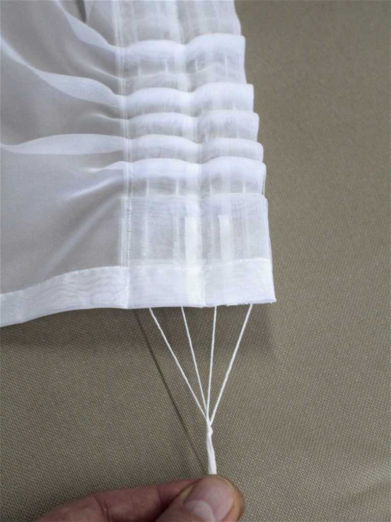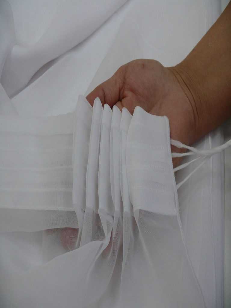 - depois disso, resta apenas alinhar o tule, criando lindas dobras, e fixar os fios na fita da cortina.