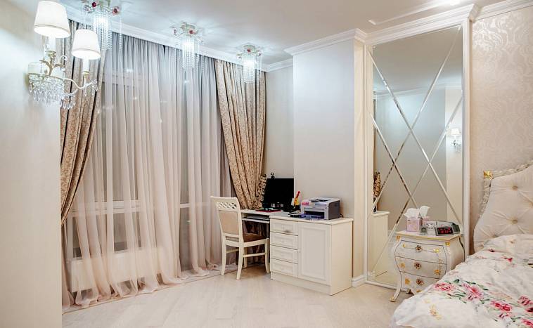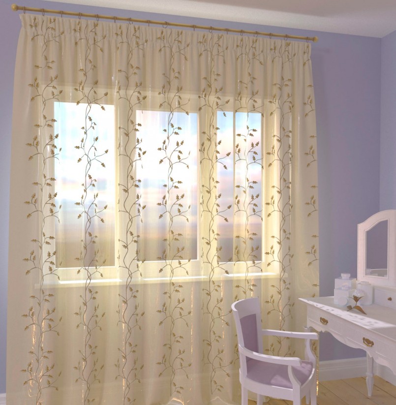 A escolha da densidade da matéria depende diretamente de onde vão as janelas da área de dormir. Se forem os lados sul e leste, é melhor dar preferência a tecidos densos que dispersam a luz. Por exemplo, organza com bordado ou malha densa - esta opção ficará especialmente boa no verão. Se a sala estiver voltada para oeste e norte, é provável que haja falta de luz natural nela. A melhor solução neste caso será um véu fino e transparente.