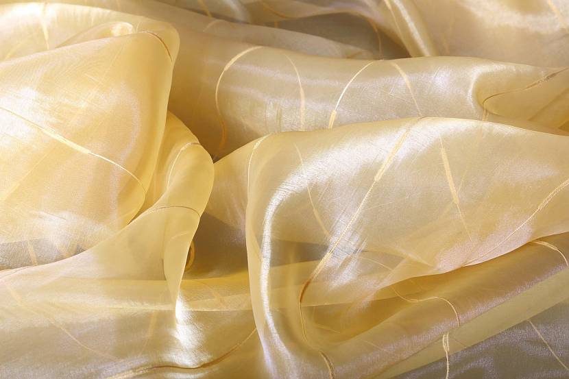 Este tecido é mais utilizado para a confecção de cortinas, é feito de seda natural ou adiciona-se poliéster - a composição qualitativa dos fios determina o preço final do produto.