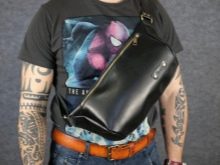 Para os homens esguios, bananas grandes demais não são adequadas, porque por causa delas a coerência da imagem se perde. Para homens com um físico apertado, as opções de camurça são adequadas. É melhor usar o acessório por cima do ombro, então a atenção não estará voltada para a barriga volumosa. Ao escolher as cores, você precisa levar em consideração suas preferências de gosto. Os tons mais preferidos são preto, branco, marrom e bege.
