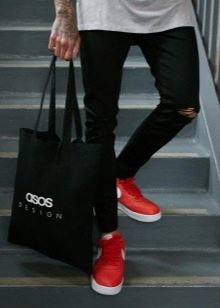 As bolsas masculinas têm cores monocromáticas restritas ou um padrão xadrez, e couro artificial ou natural é frequentemente usado como decoração.