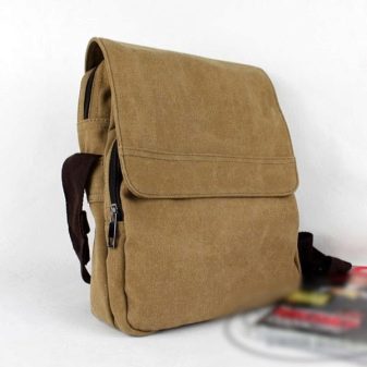 Os comprimidos são um tipo popular de bolsa para os homens. Eles são pequenos, de formato retangular, com um cinto e muitas vezes com uma aba na frente. Como um mensageiro, você pode carregar uma bolsa de tablet jogando a alça sobre o ombro ou posicionando-a diagonalmente sobre o peito. Tradicionalmente, as bolsas desse tipo eram feitas de couro genuíno, mas hoje as opções de tecidos também são muito comuns - materiais densos como náilon, poliéster e algodão são usados para costurar. Artesãos particulares ou pequenos ateliers oferecem opções interessantes para comprimidos feitos de lona e couro genuíno.