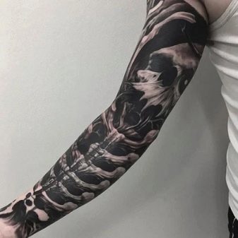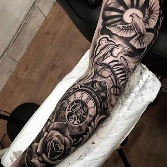 Trabalhar em uma manga pode levar várias sessões. Tudo depende da escala do esboço, do estilo, do detalhamento e da solvência financeira do cliente. Além disso, tal tatuagem não está ao alcance de todos, e não é nem uma questão de tempo e paciência, mas de um custo sólido. Portanto, a tatuagem de manga entre os homens é uma espécie de símbolo de atitude em relação à categoria de pessoas independentes que vivem para o seu próprio prazer.
