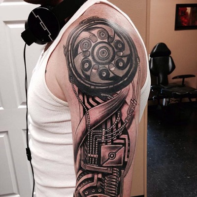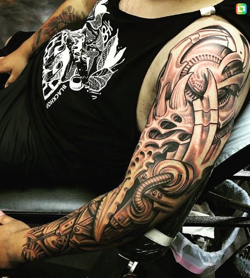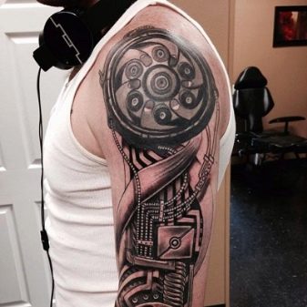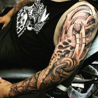 - Biomecânica... Este é realmente um estilo masculino. Quando você olha para tal manga, parece que um ciborgue futurista ganha vida diante de seus olhos. Aqui é importante confiar o trabalho ao mestre, que transmitirá o esboço selecionado de forma muito confiável e detalhada.