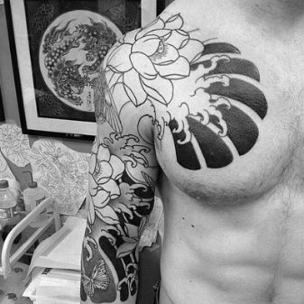 As tatuagens são uma das formas mais marcantes de mostrar a individualidade. Uma tatuagem em preto e branco em forma de manga para os homens é considerada uma espécie de atributo de uma vida de sucesso e de coragem. O recheio não é uma tendência nova, mas não perdeu popularidade nos últimos anos.
