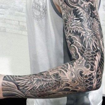 Em uma composição corporal em grande escala, o fundo é tradicionalmente associado ao topo com um significado geral. Mas esta está longe de ser a única opção possível. As tatuagens na manga são diferentes em conceito: