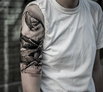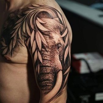 Quanto aos enredos, a escolha puramente masculina do desenho da tatuagem é um simbolismo de força. Na maioria das vezes, o motivo é baseado no personagem central - o animal. Na maioria das variantes, os homens dão preferência aos predadores: panteras, lobos, ursos. A mesma categoria inclui pássaros (pipas, águias, fênix), vida marinha (tubarões). Personagens fictícios (dragões, górgonas) também estão em demanda.