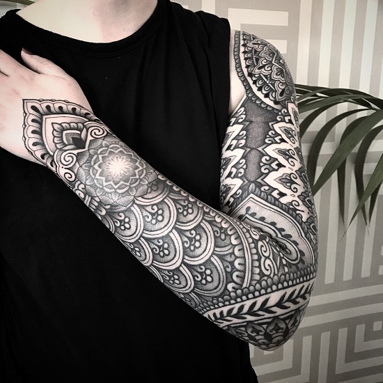 - Ornamental... Ele difere do blackwork em uma variedade de padrões geométricos.Freqüentemente, todo o desenho se origina de uma mandala ou de um círculo perfeito. Às vezes, há elementos da adição com um significado profundo criptografado.