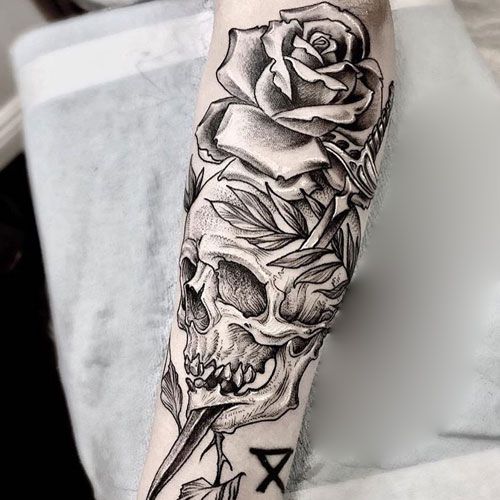 A mão é como se tivesse sido criada para uma tatuagem, porque essa parte do corpo foi afetada mais recentemente pelas mudanças relacionadas à idade. Nesse ponto, o padrão é menos deformado durante o ganho e perda de peso. Composições verticais com muitos elementos ficam lindas na mão. Ressalta-se que a confecção de uma tatuagem de manga é um processo complexo que requer profissionalismo e habilidade especiais devido à difícil localização do desenho e às altas demandas dos clientes.